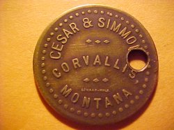 Corvallis, Montana CESAR & SIMMONS 25c Token